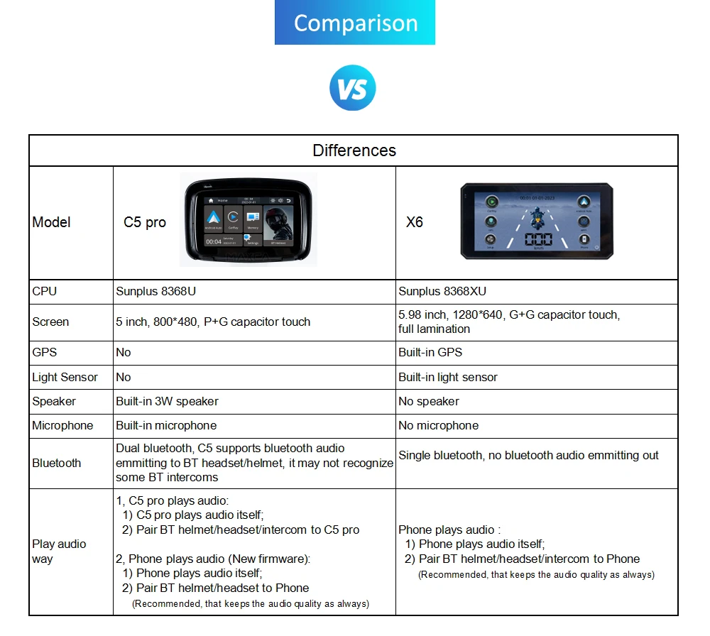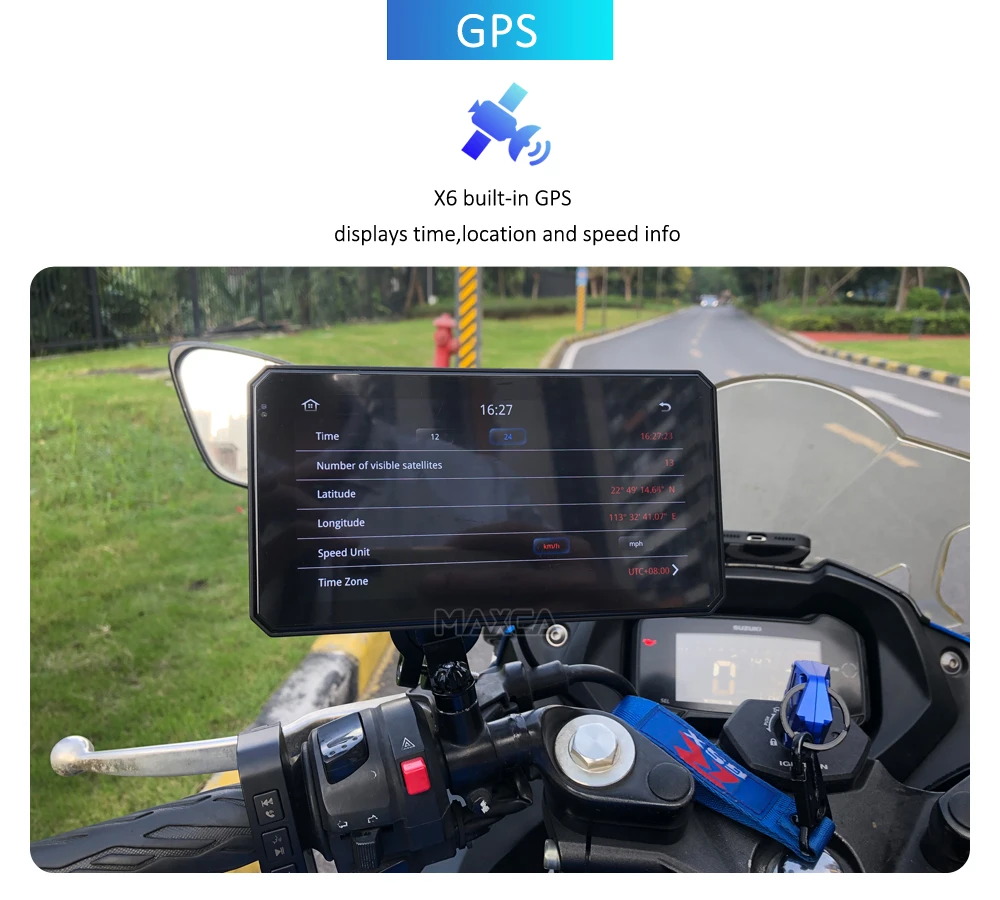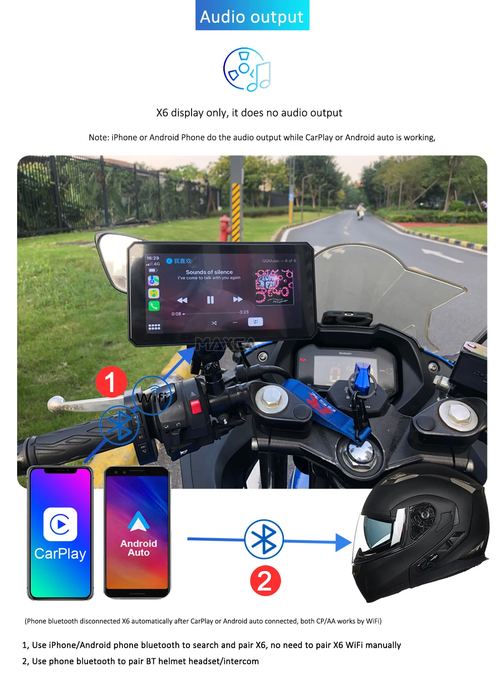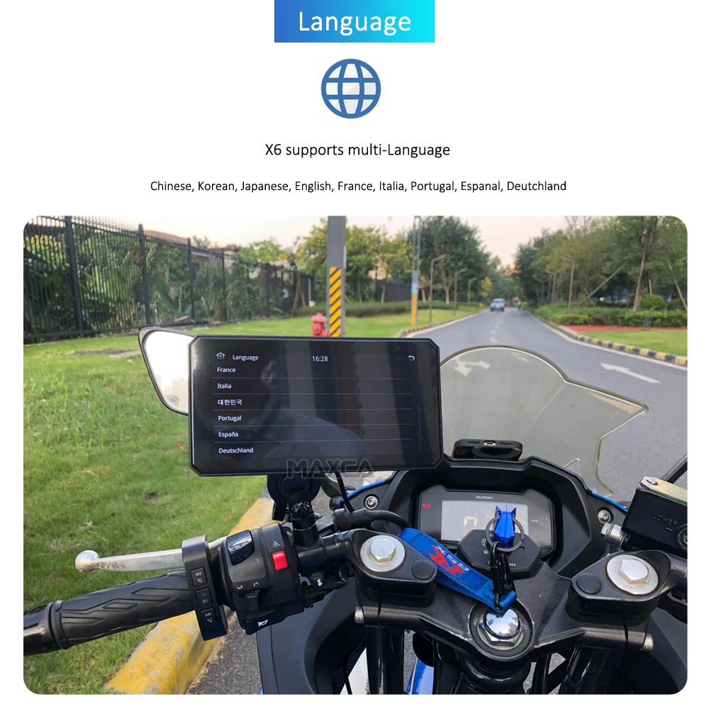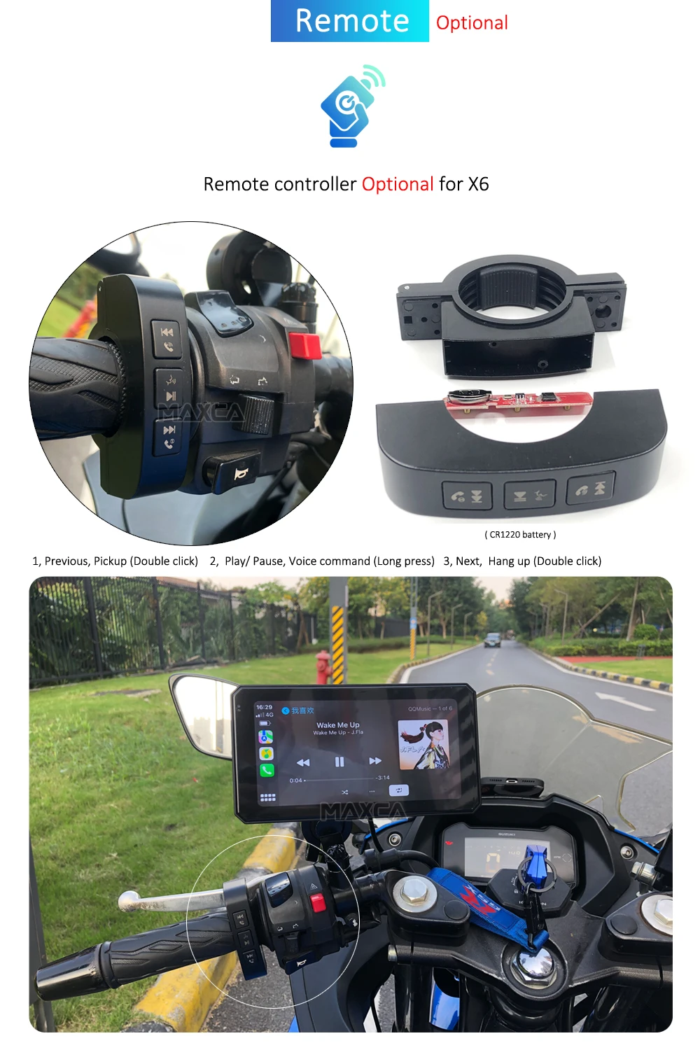 Maxca X6 Wireless Apple CarPlay Android Auto Navigation Motorcycle IP67 Waterproof Light Sensor Multimedia Player