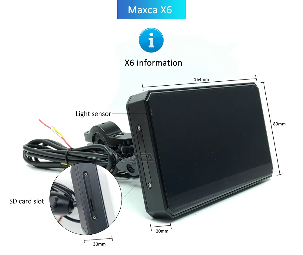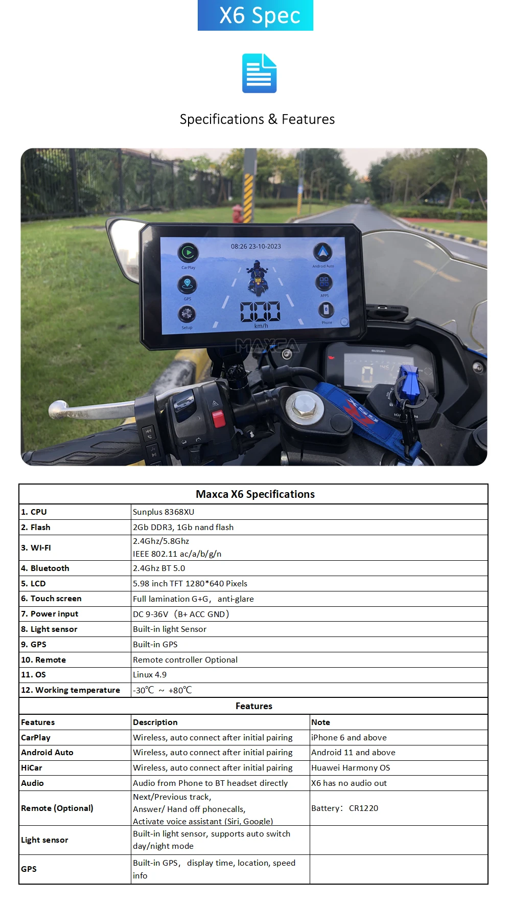 Maxca X6 Motorcycle Wireless Apple CarPlay Android Auto Navigator IP67 Waterproof 5.98 inch Light Sensor Multimedia Player Screen full installation accessories included