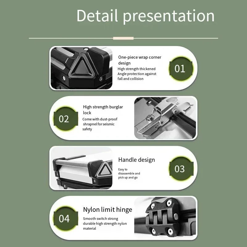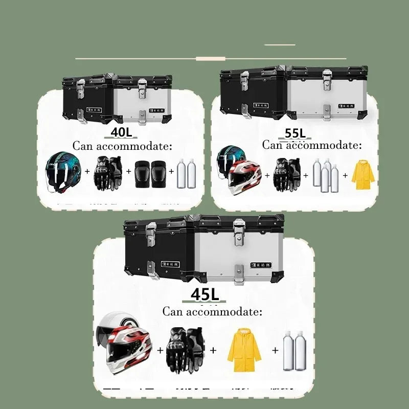 40L Aluminum Alloy Motorcycle Rear Top Case Luggage Storage Tail Box Waterproof Trunk Tool Box Motorcycle Universal Rear Cases
