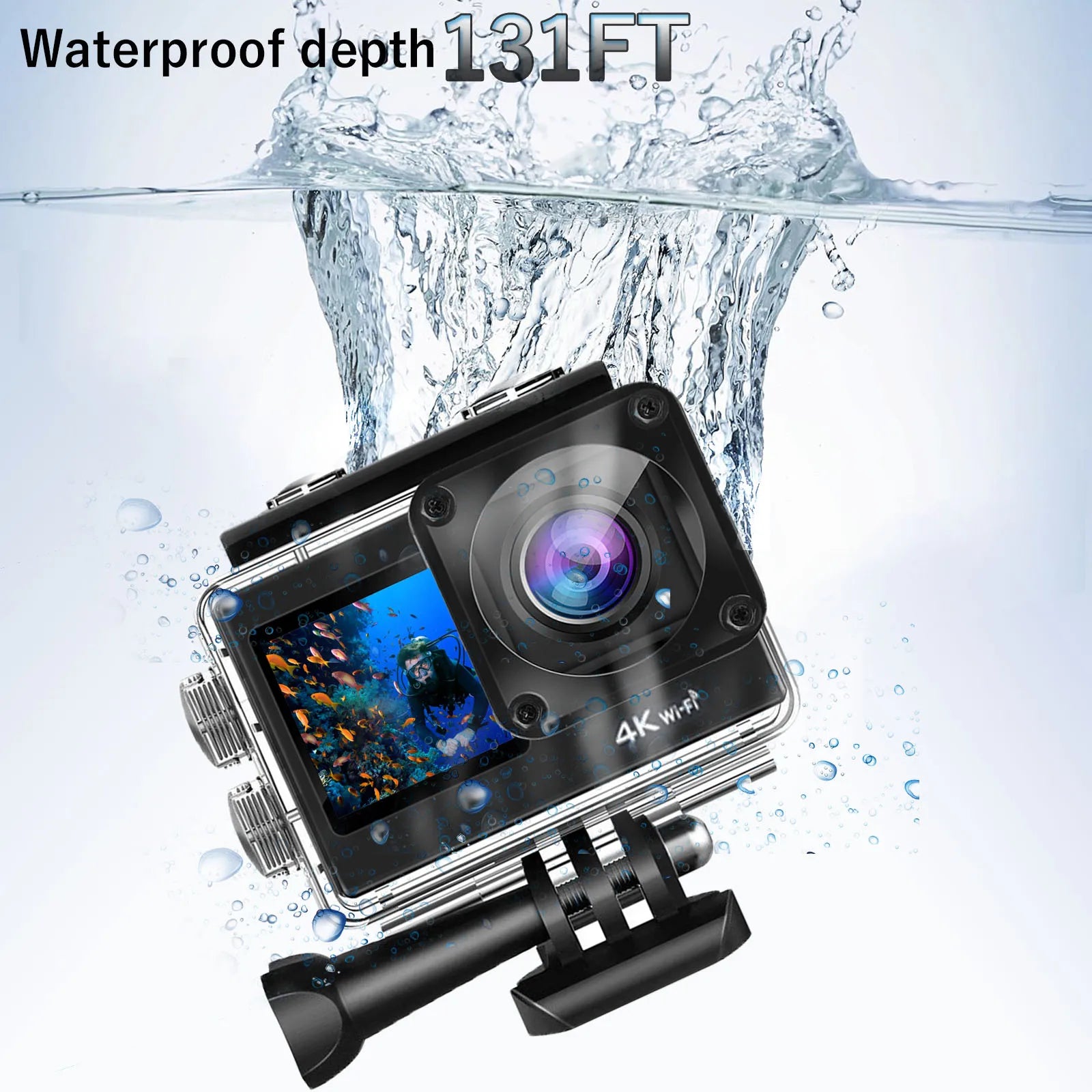 4k Action Camera WiFi Dual Screen Ultra HD 30M Underwater Camera Waterproof Camera Accessories Kits for Helmet Bicycle