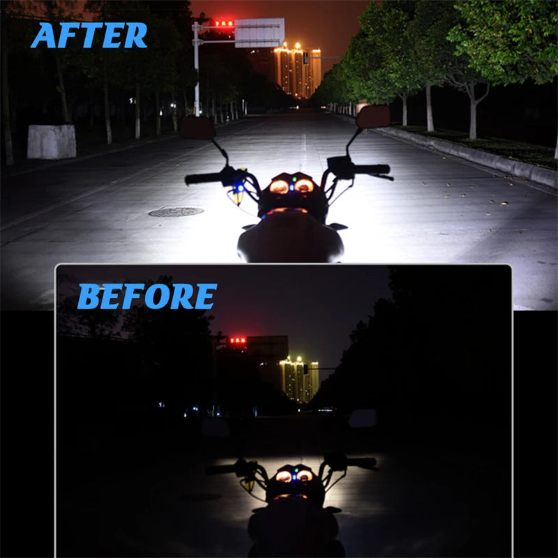【High performance】: Our new motorcycle headlight is also dustproof and shockproof to meet most of the needs of users, this product also uses an upgraded PC lens to provide high light transmission to maximize the light in front of you, not only low cost but also strong and durable.