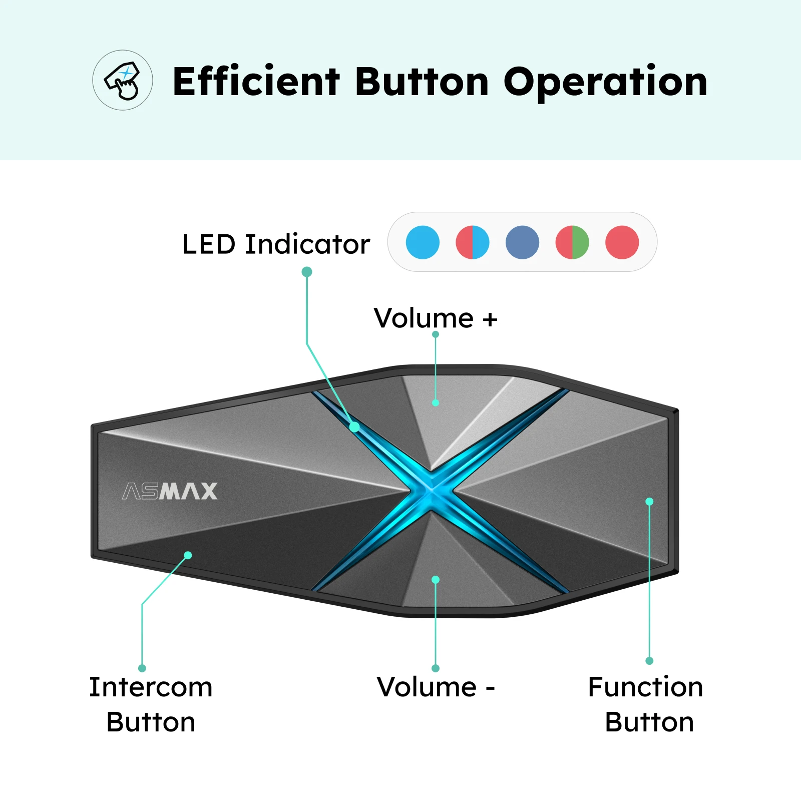 【Magnetic Mounting & Fast Charging】Effortlessly install your motorcycle bluetooth intercom with the magnetic base and enjoy the convenience of a 1250mAh battery with fast-charging support. Ride worry-free knowing you can charge while in use, ensuring uninterrupted riding experiences. Plus, customize your experience with various breathing light colors or simply turn them off.Mesh 5.0