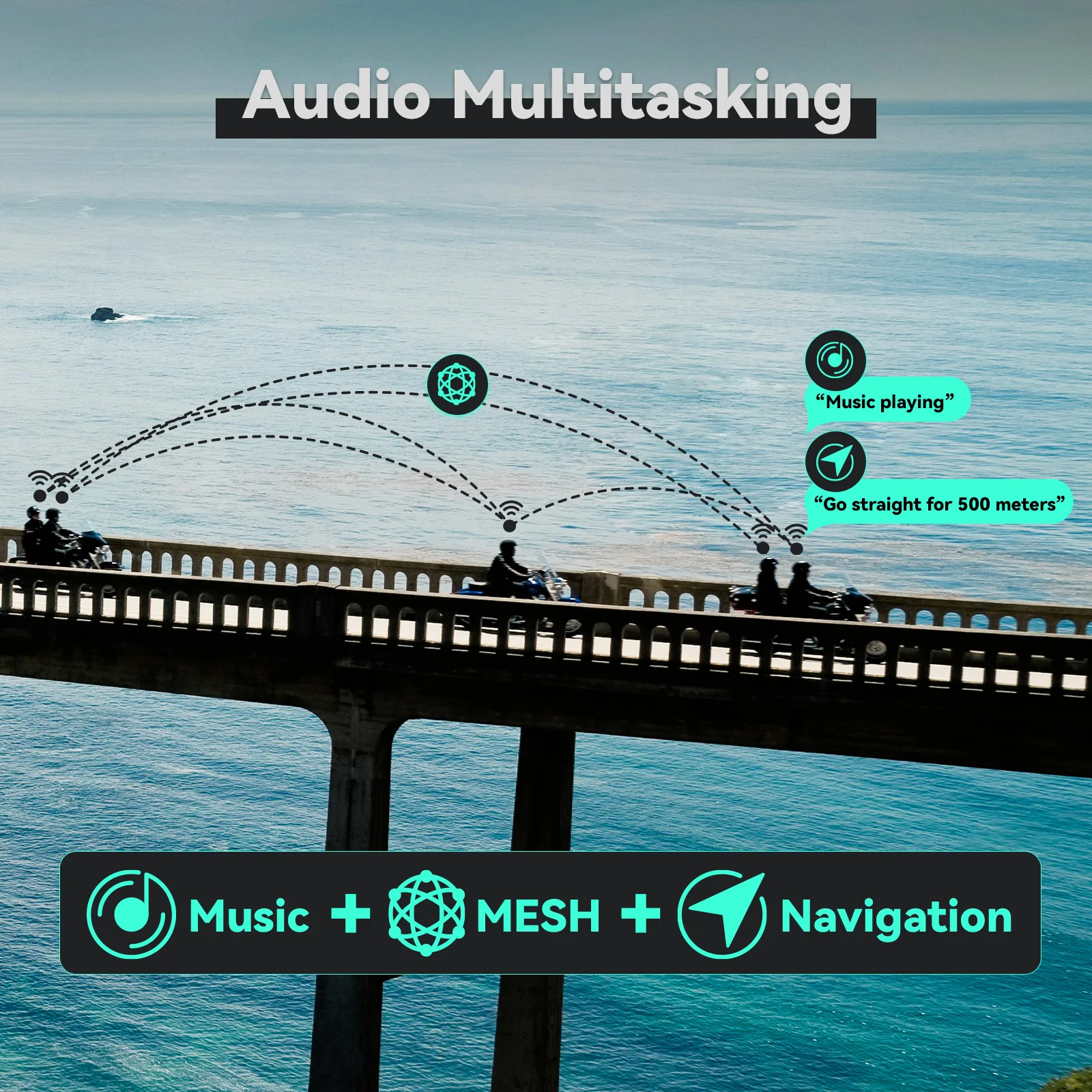 Keep your eyes on the road and your hands on the bars. Our always-on natural voice operation engine makes button-pressing a thing of the past. Just say "Hi Max" and tell it what you want, your ASMAX will do the rest.Audio Multitasking