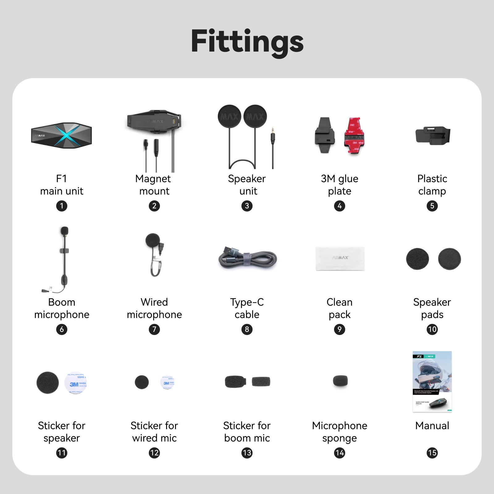 ASMAX F1 Motorcycle Bluetooth Headset, Voice-Control Helmet intercom Communication System, 10 Riders 1.8km Mesh Intercom, Fast Charging/ Universal Pairing/ Noise Cancellation/ IP67 Waterproof, 1Pack