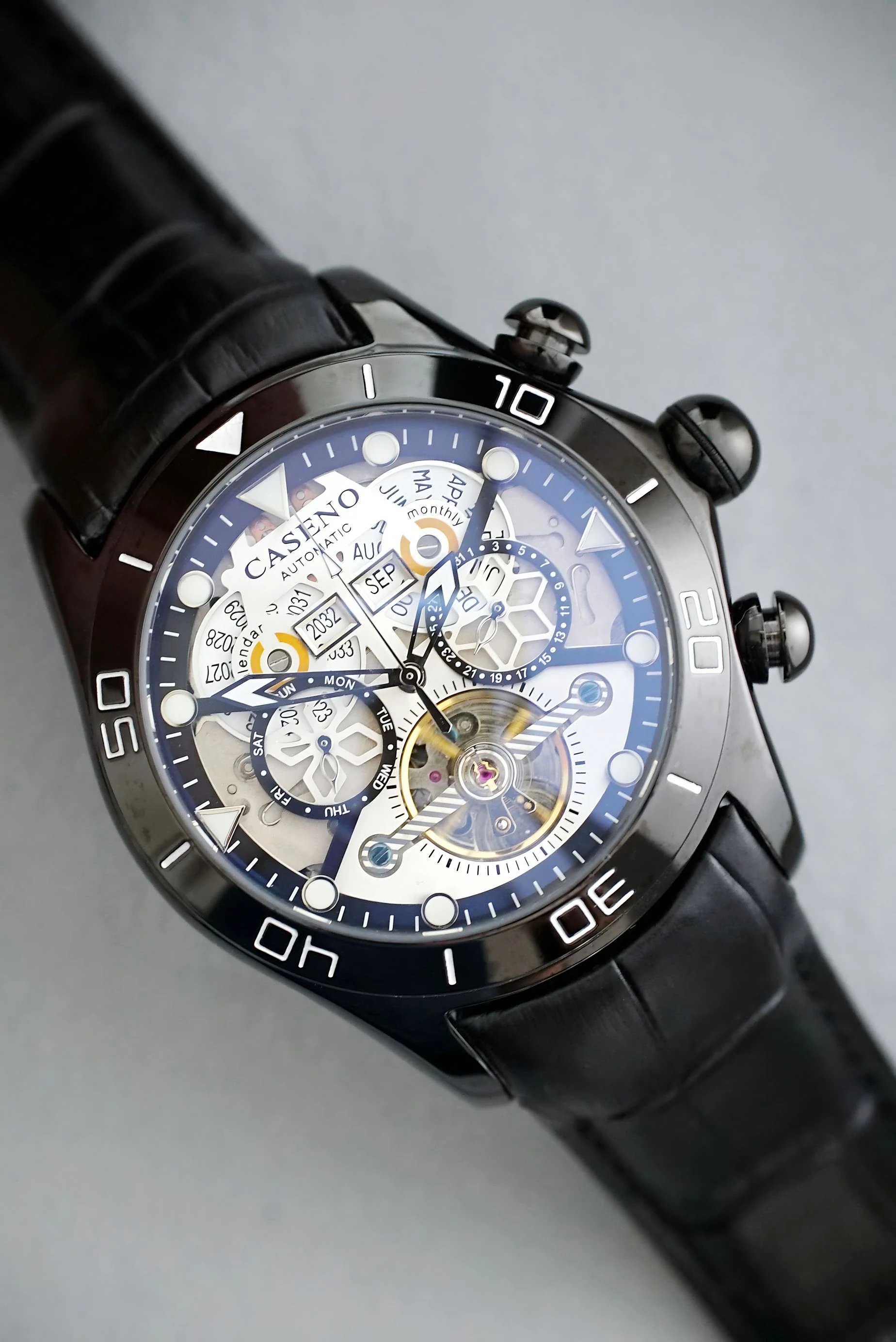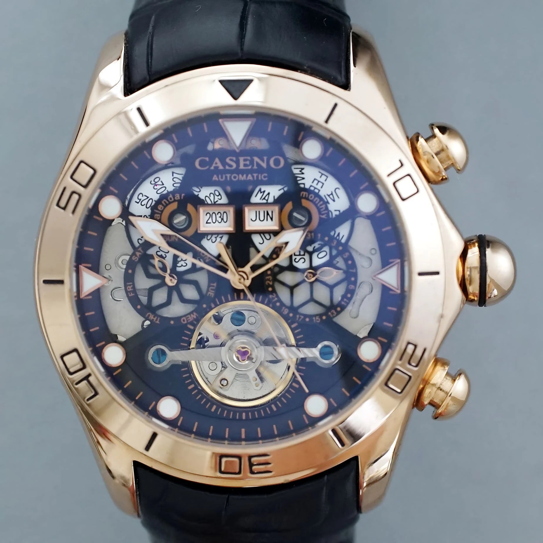 CASENO brand bubble perpetual calendar fully automatic tourbillon large dial mechanical watch belt watch -58284G