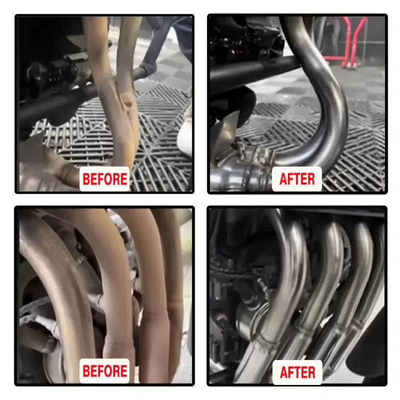 Exhaust Pipe Renewal Spray–Revive Dull Metal,Restore Shine and Texture–High-Temperature Surface Cleaner for Cars and Motorcycles