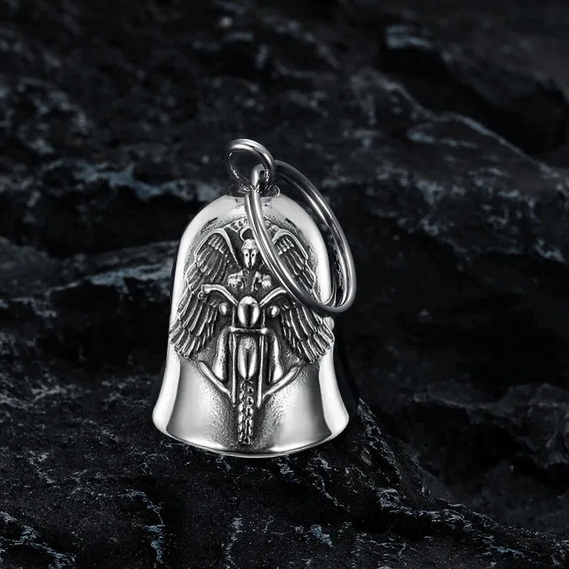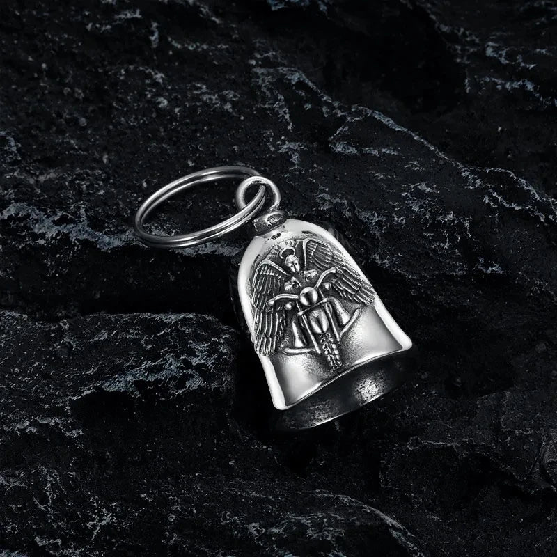 Fashionable Angel Wings Motorcycle Bell Pendant Keychain Punk Rock Men's Riding Party Amulet Exorcism Jewelry