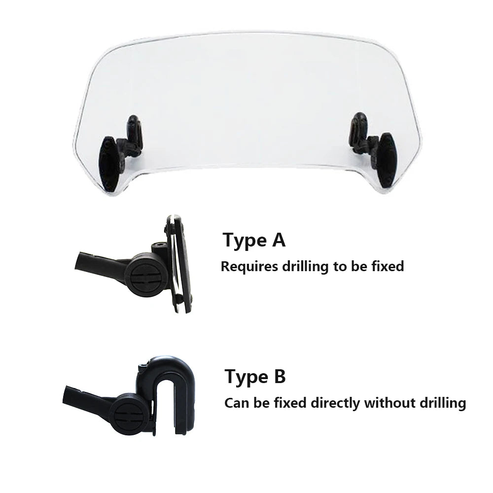 -Adjustable windshield, fixed on the above of original windshield suitable for nearly any bike with a windscreen.