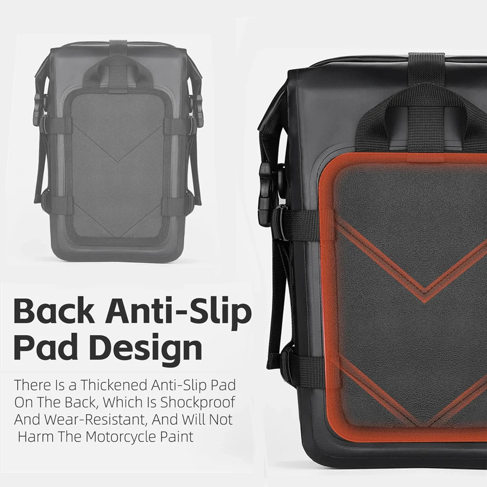 [Waterproof Guarantee] Ride through thunderstorms or river crossings. The IPX6 level welded large sissy bar and frame bag will will withstand any water as long as it's not completely submerged for long.