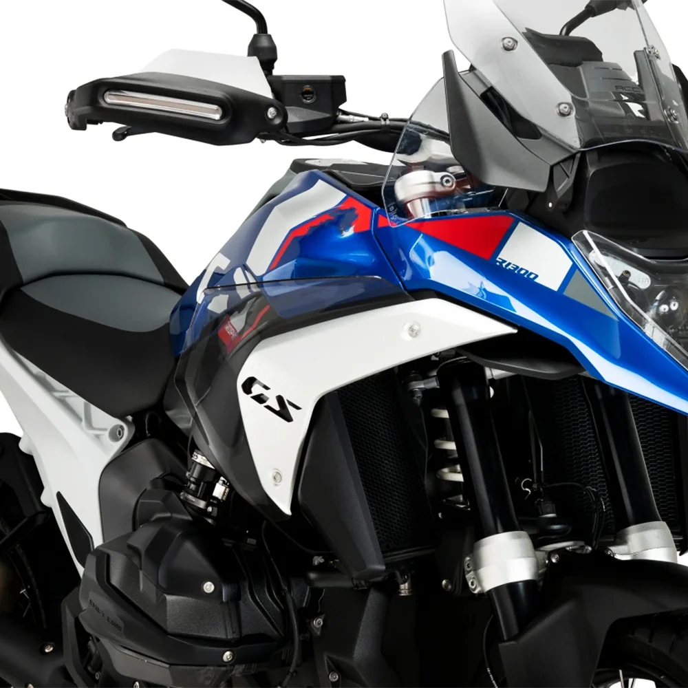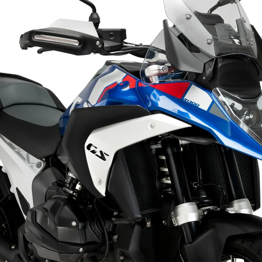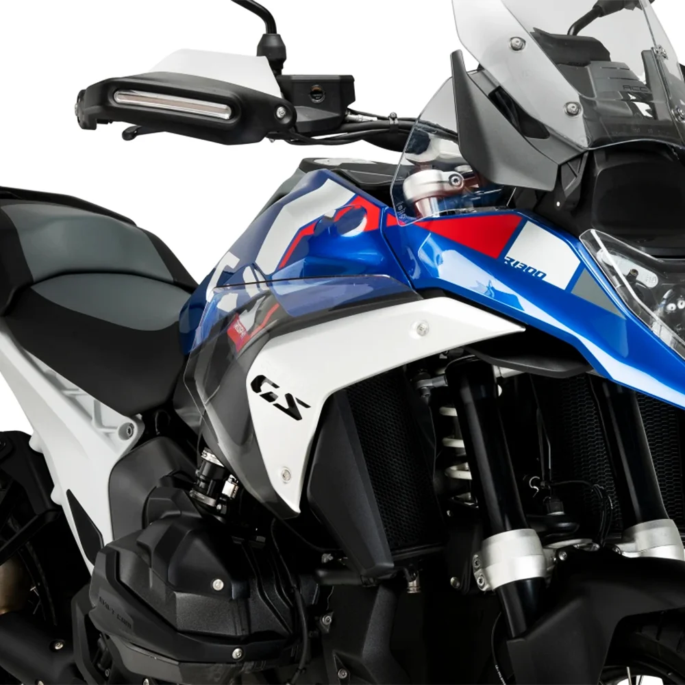 Specifically designed for the new BMW R1300GS, the lower deflectors are a remarkable aerodynamic aid for rider protection.