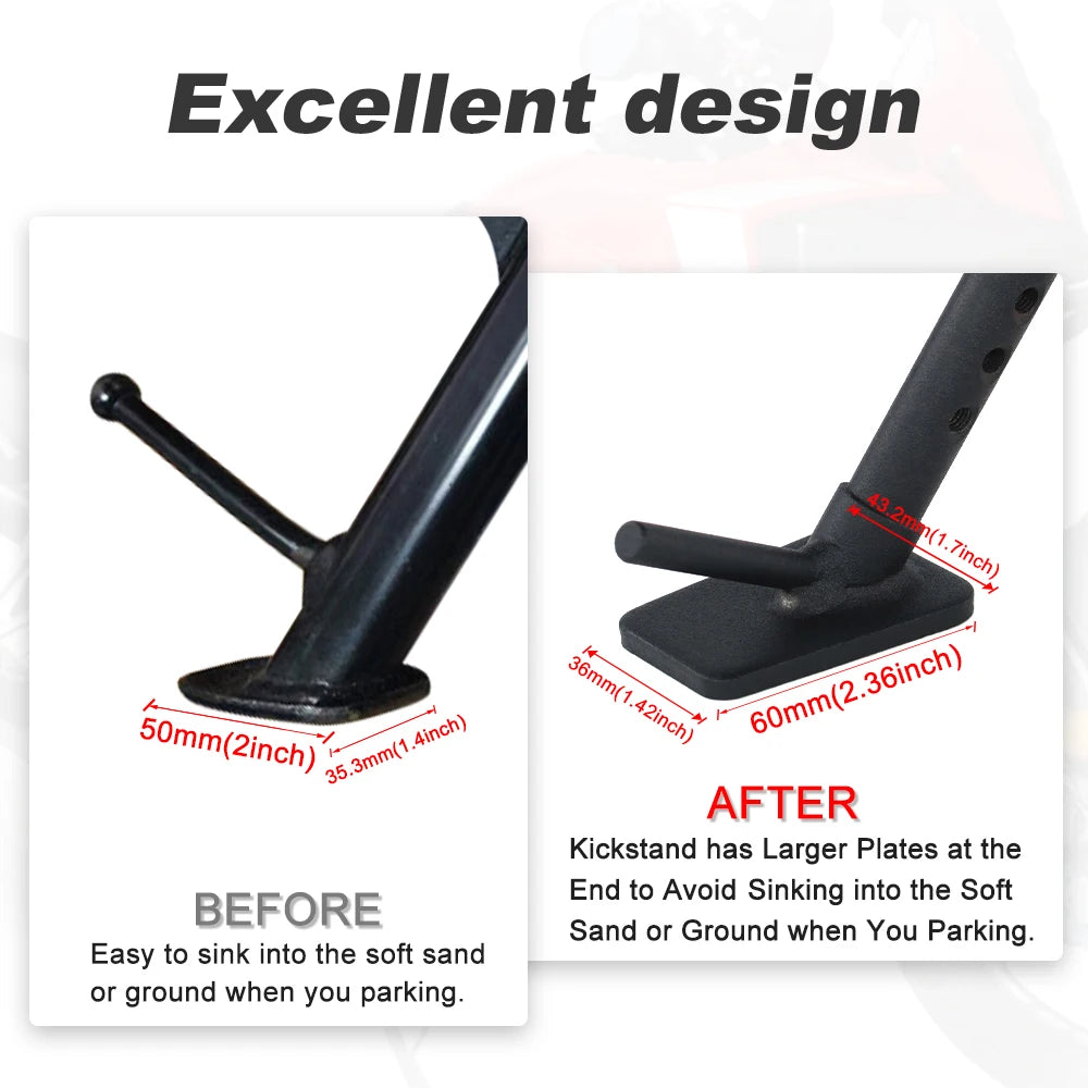 Kickstand has Larger Plates at the End to Avoid Sinking into the Soft Sand or Ground when You Parking.