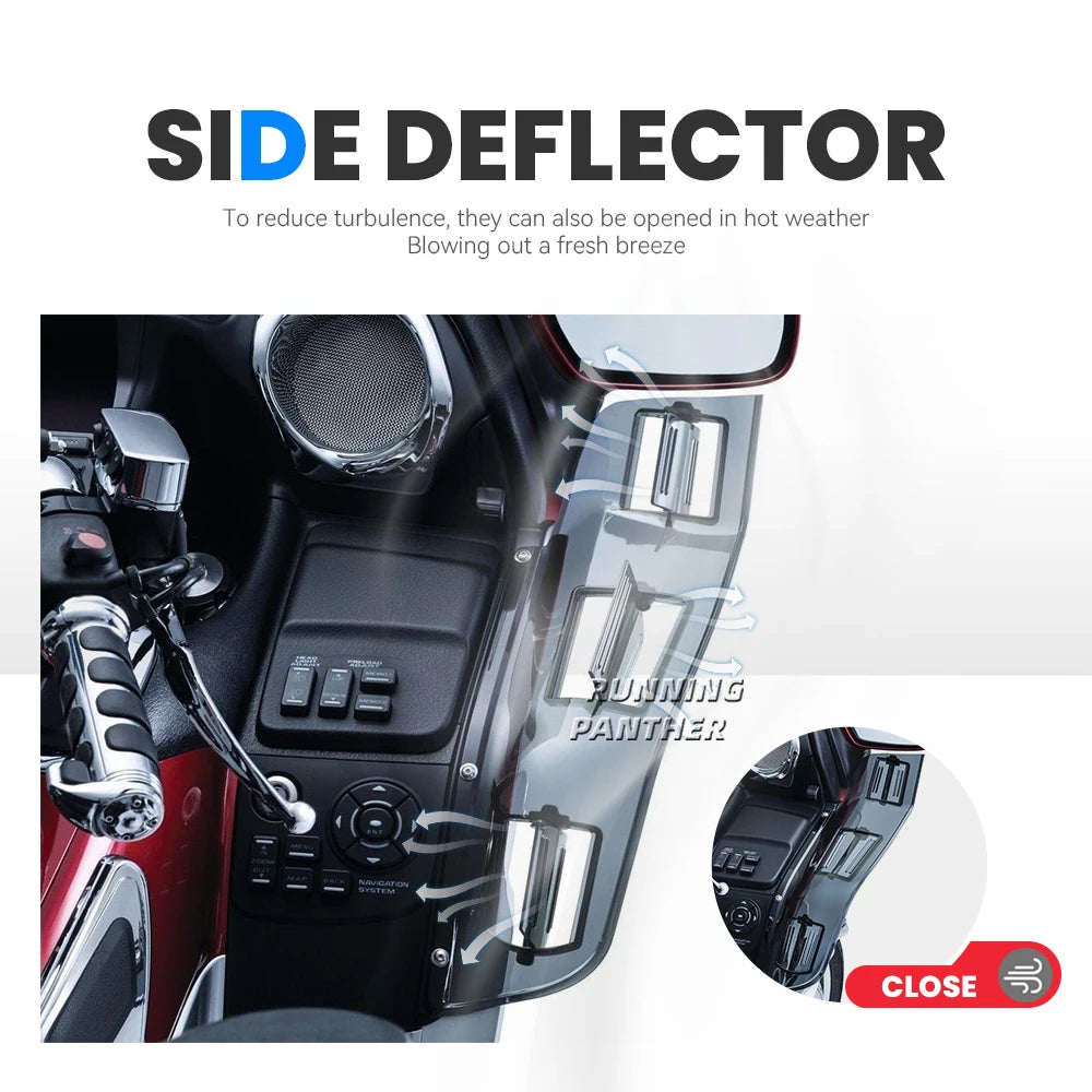 - Direct airflow around the fairing for reduced turbulence during cool weather, or open them for a refreshing breeze on those scorching-hot days.
