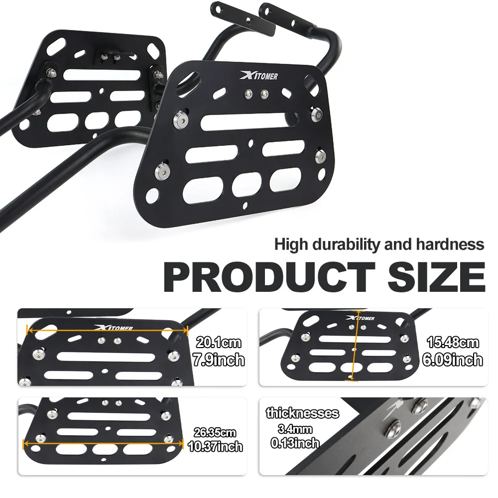 By adding the saddlebag support racks to the bike, you will greatly expanding the carrying capacity of the bike.