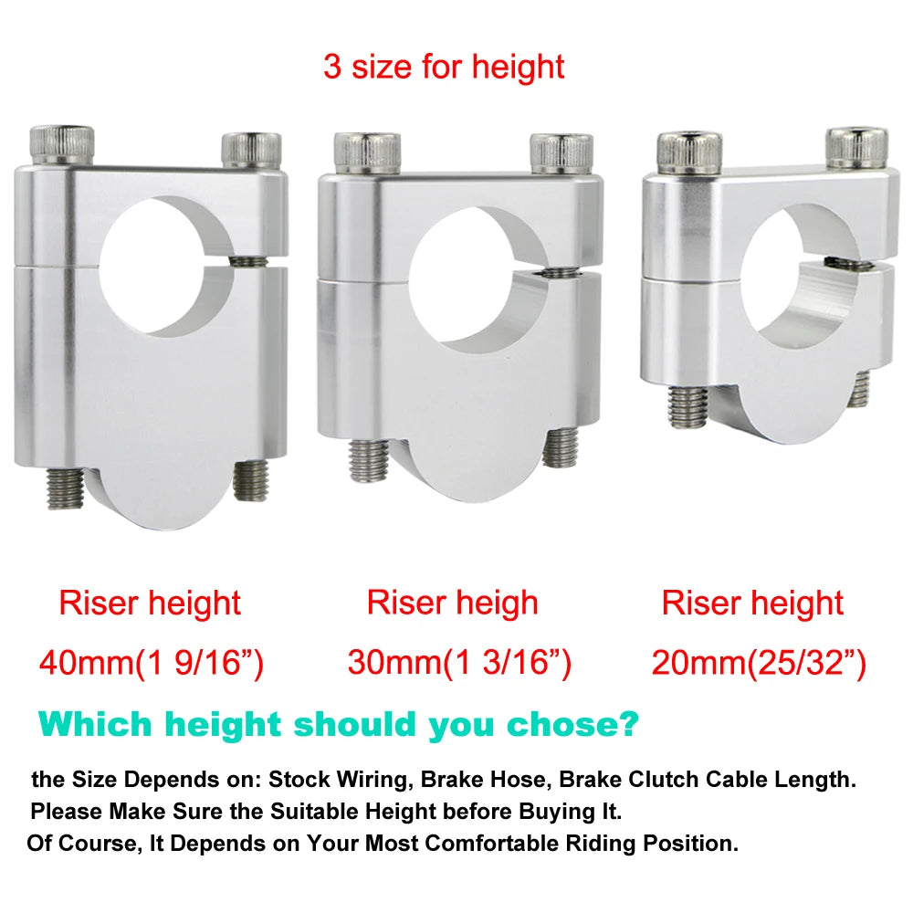 These Handle Bar Risers are specifically designed for the motorcycles, dirt bikes and ATVs which have 28mm handle bar.