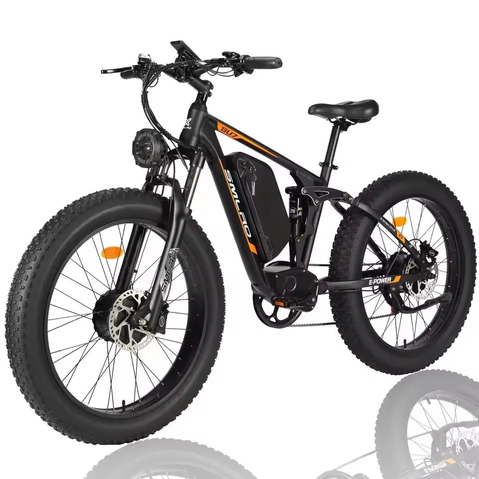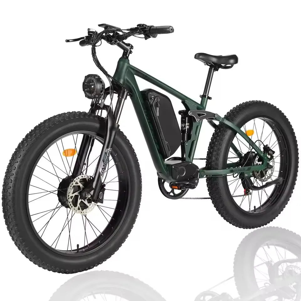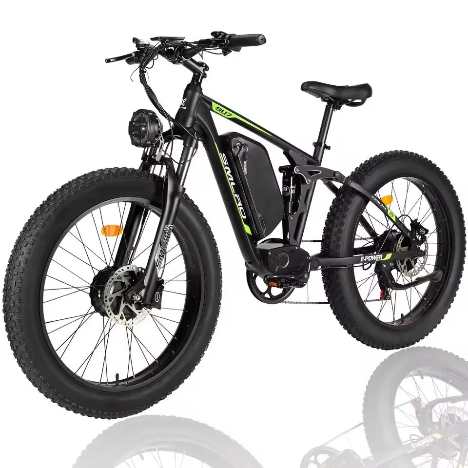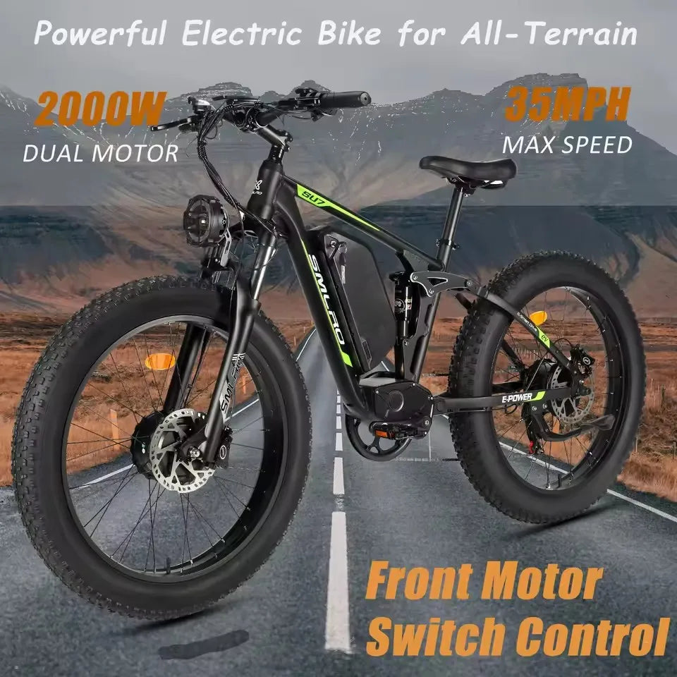 Hots Sales Su7 2000W Dual Motor Electric Bicycle, 7 Speed 35MPH MTB, 48V 22.4AH 26 ''Fat Tire Ebike with Full Suspension