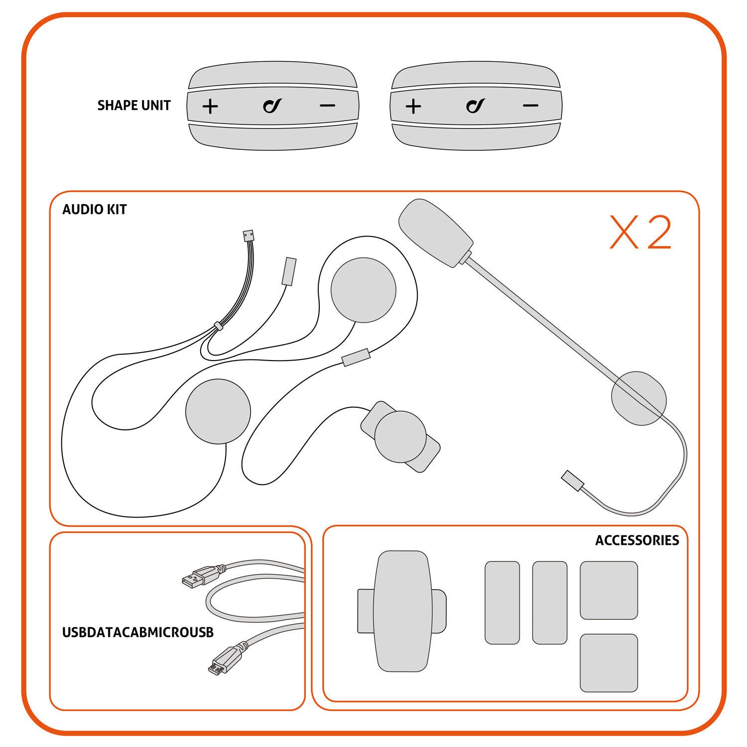 - 2 microfone de vareta ajustável (capacetes jet-abertos e modulares).