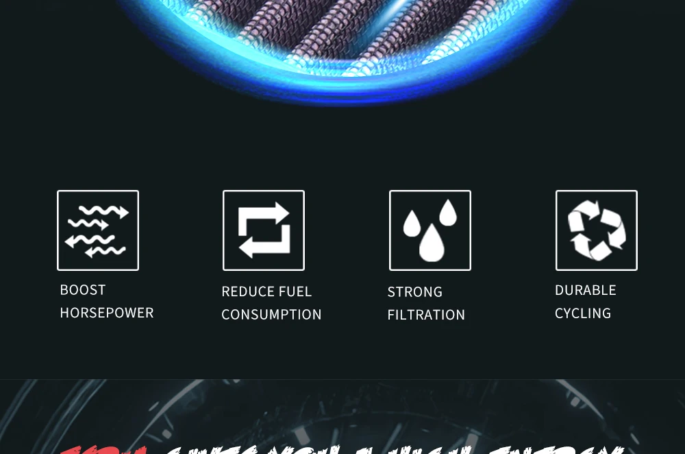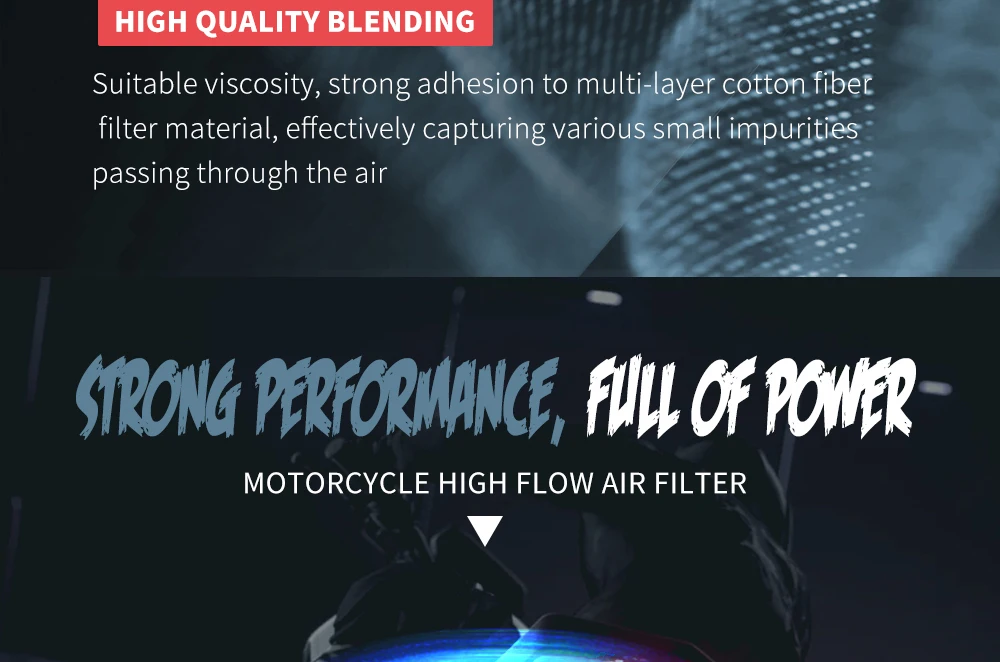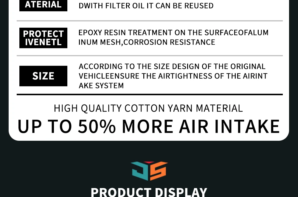 -JSBM performance High-Flow air filters Multiple layers of cotton yarn help absorb finer particles and achieve nano-level filtration effects.