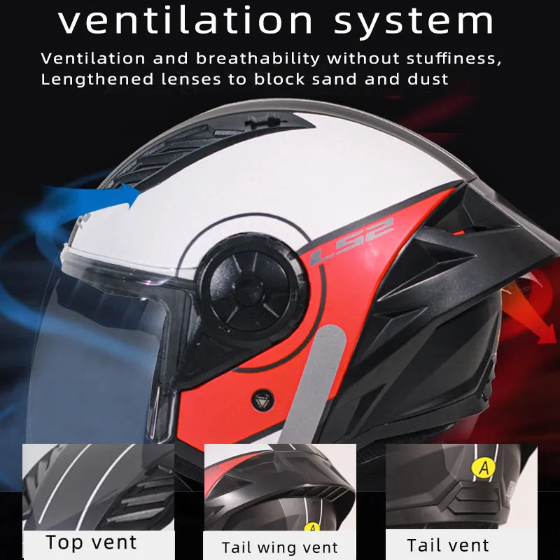 LS2 Motorcycle Helmet 3/4 Open Face Helmets Capacete LS2 OF616 Airflow Ⅱ Big Tail Wing Jet Scooter Half Helmets Cascos Para Moto