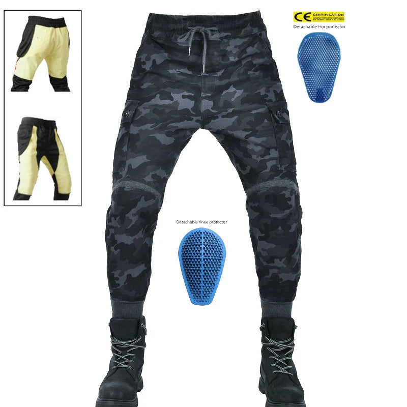 Men's Motorcycle Riding Jeans Windproof Casual Motorcycle Pants Anti-drop Workwear Pants with Adjustable Protective Gear