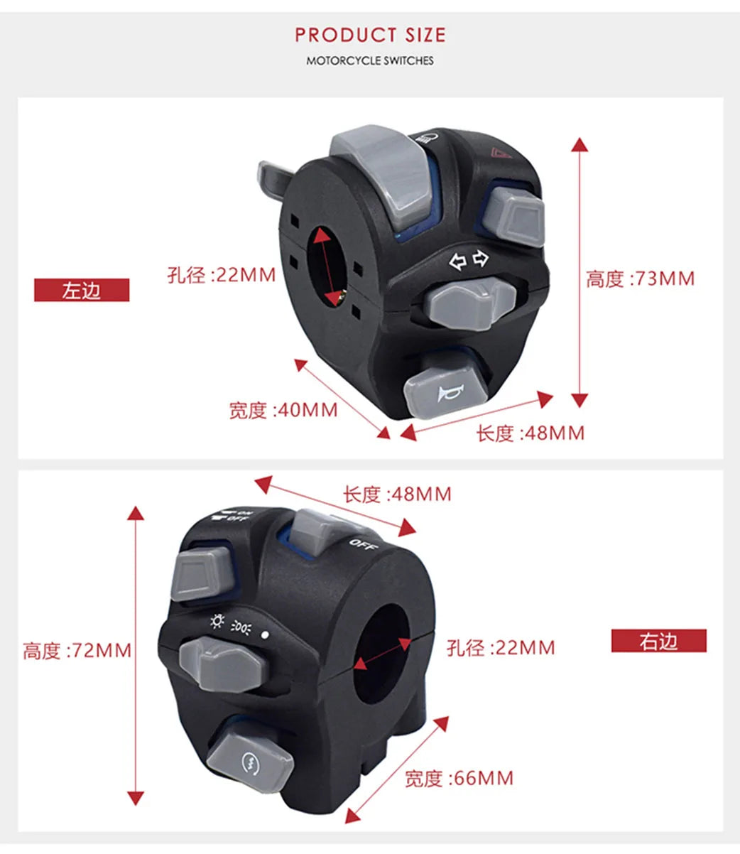 Modified Motorcycle Handlebar Switch with LED light Button Left Right Hand for Benelli TNT600 TRK502 TRK502X