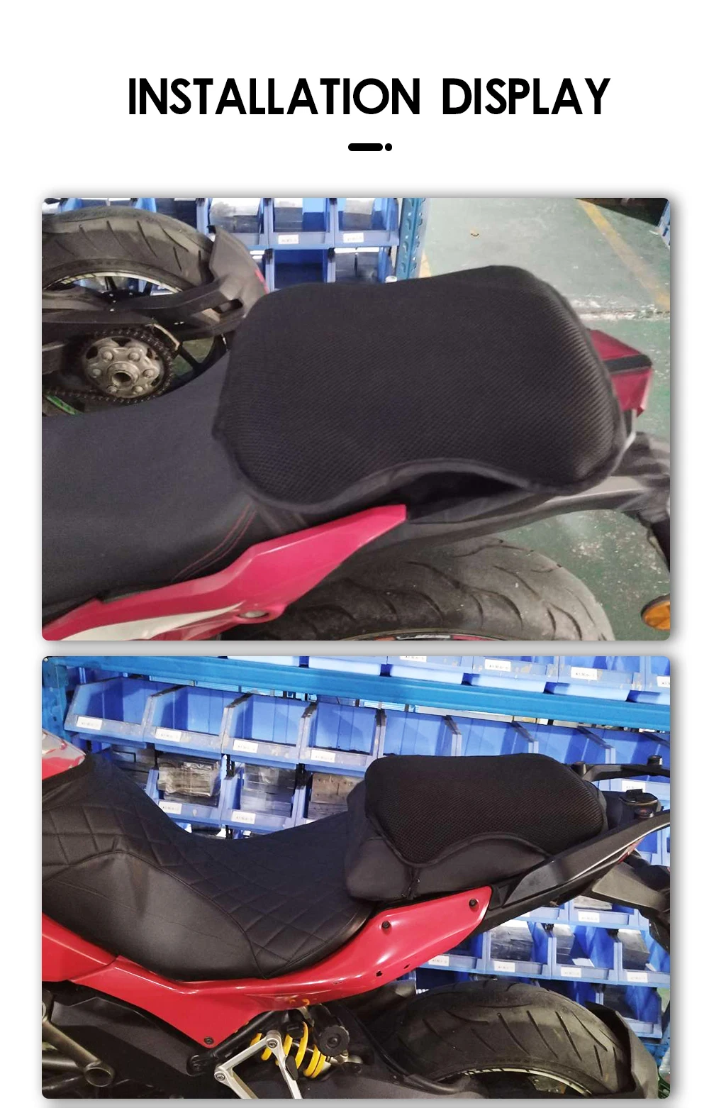 **Non-Slip Bandages Fixed In order to keep the cushion in the position you want, we use non-slip particles and double-layer bandages to fix it. The bandage adopts the method of cross strapping to take care of the shape of the seat and make the seat and the seat cushion better fit. The bottom of the motorcycle cushion is also designed with unique anti-skid particles. Be more restrained and stable.