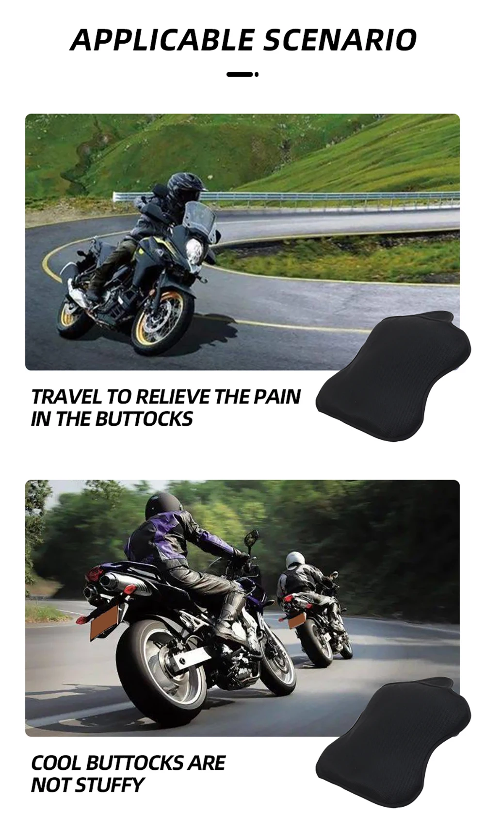 **Ergonomic Design The ergonomic motorcycle seat cushion design makes your spine, thighs and buttocks comfortable.