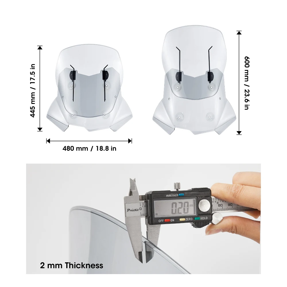 - High-grade and high-tech impact-modified acrylic windscreen.
