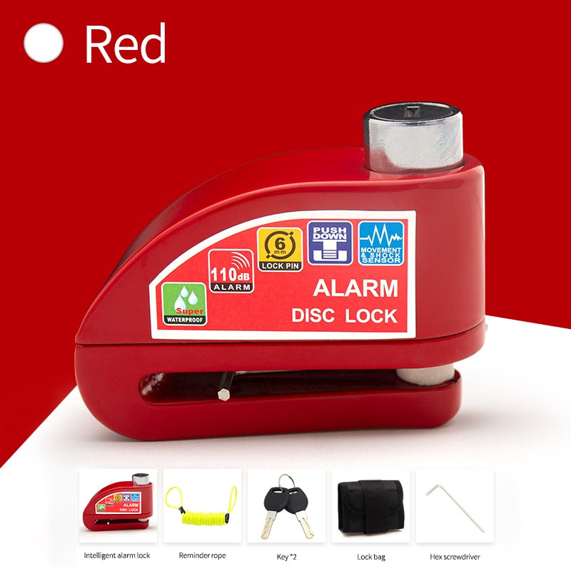 Motorcycle Bicycle Lock Alarm Safety Protection Padlock Disc Aluminum Alloy Anti-Theft Reminder Rope Lock Bag Motorcycle Accesso