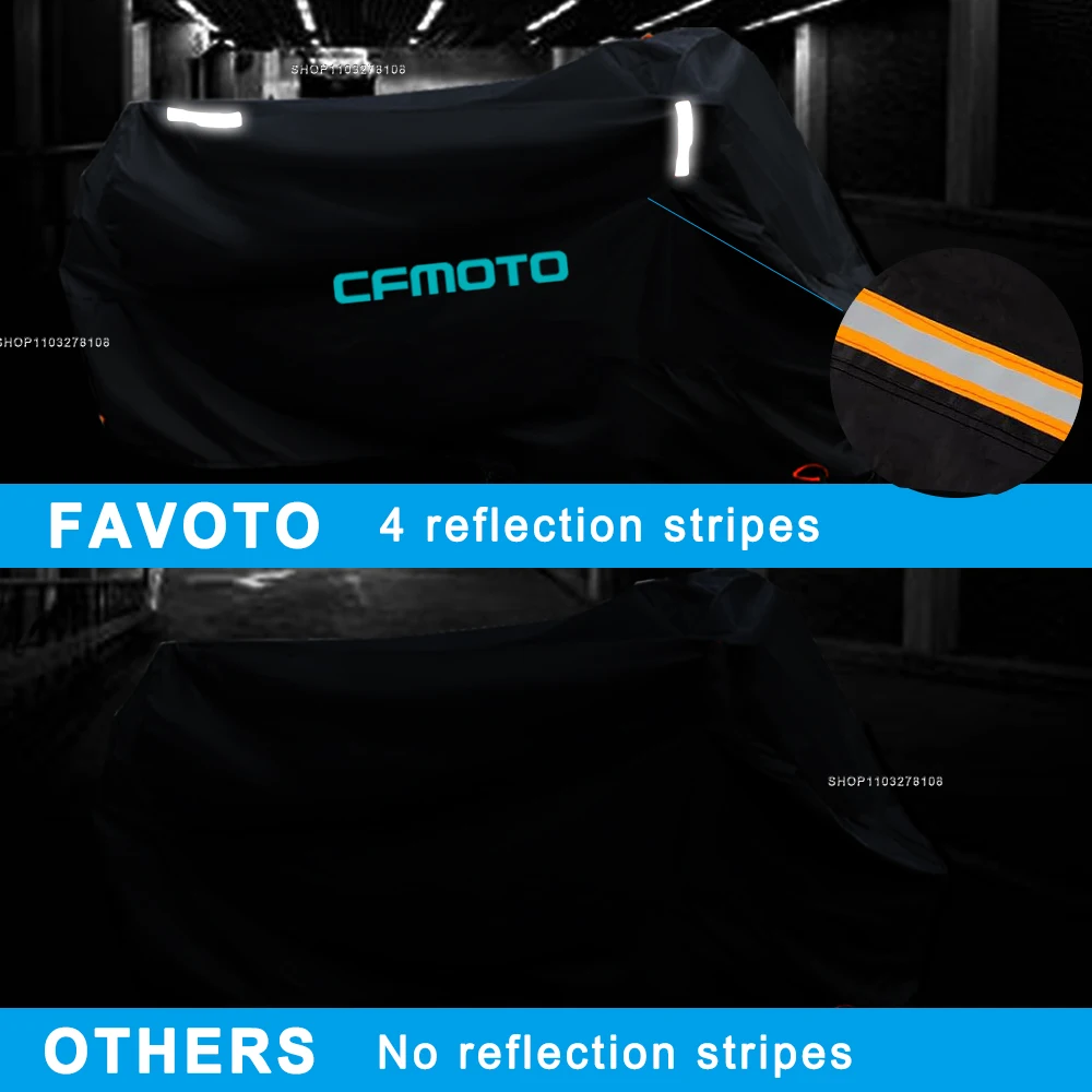 ★【 Fit for all Models】:Our motorcycle cover is suitable for CFMOTO 650GT ADVENTURA 400GT( Please measure your motorcycle before ordering.)The seams are double-stitched with waterproof tape inside, effectively solving the problem of water leakage.