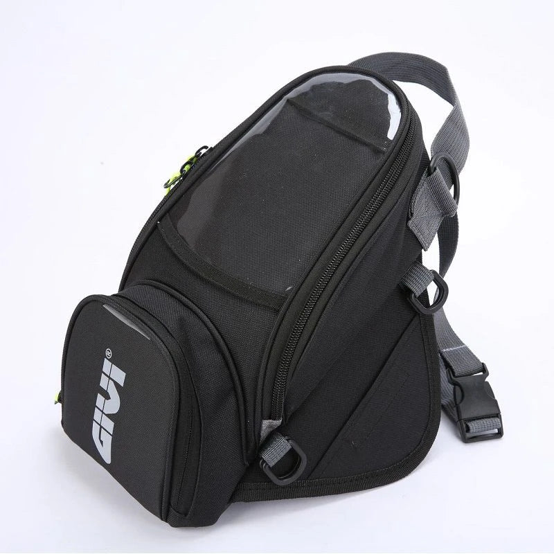 This small tank bag UNIVERSAL Tank bag - magnetic / strap type Tailbag Body bag GIVI Universal Tank Bag : - Water proof ( with rain cover ) - With Cellphone mount ( touch screen ) - Easy to attach - can be use both on steel or plastic tank ( magnetic and strap type ) - Easy Cash pockets ( easy use on expressway ) - Can be used as sling bag ( easy to carry )