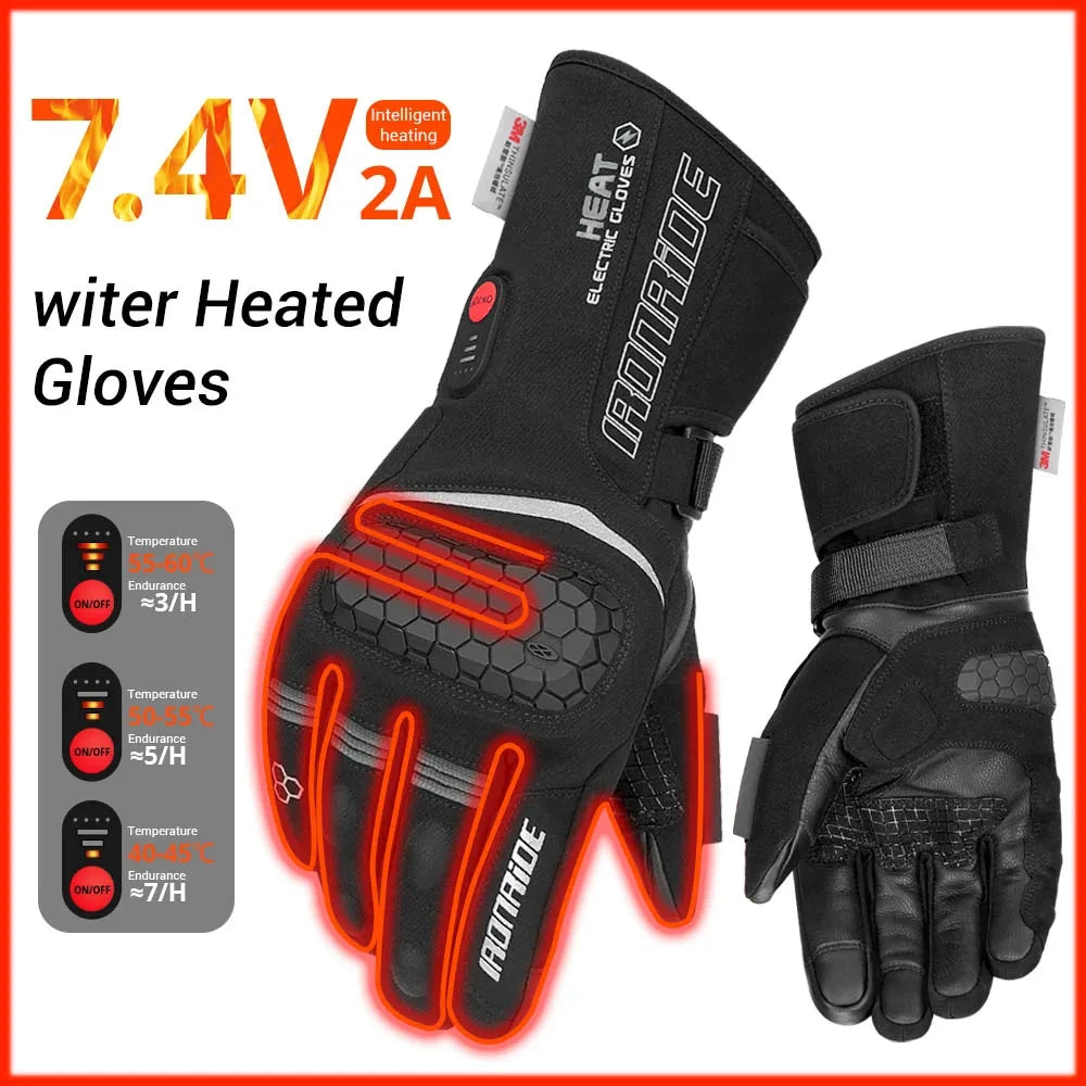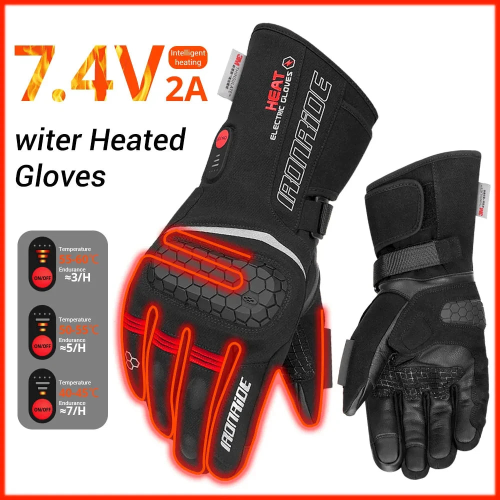 Motorcycle Heated Gloves Winter Heated Moto Gloves Warm Waterproof Rechargeable For Snowmobile Heating Thermal Gloves