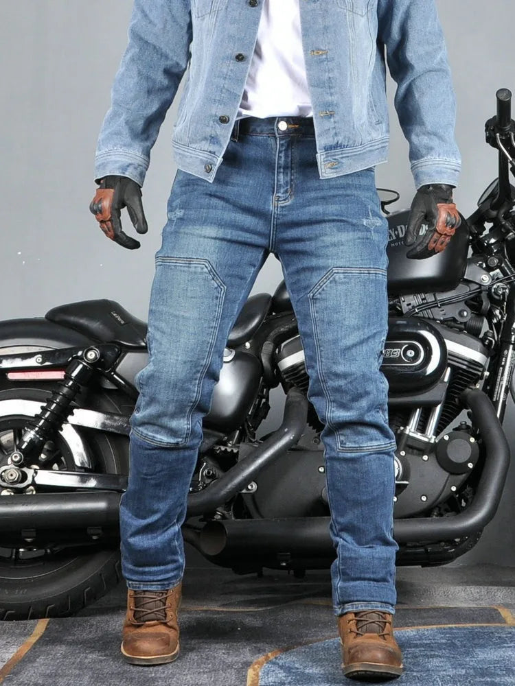 Motorcycle Jeans Men's Casual Workwear Stretch Retro Motorcycle Motorbike Riding Pants Anti-drop with Silicone Protective Gear