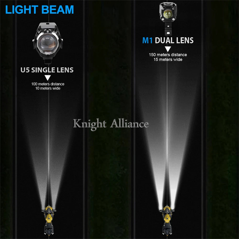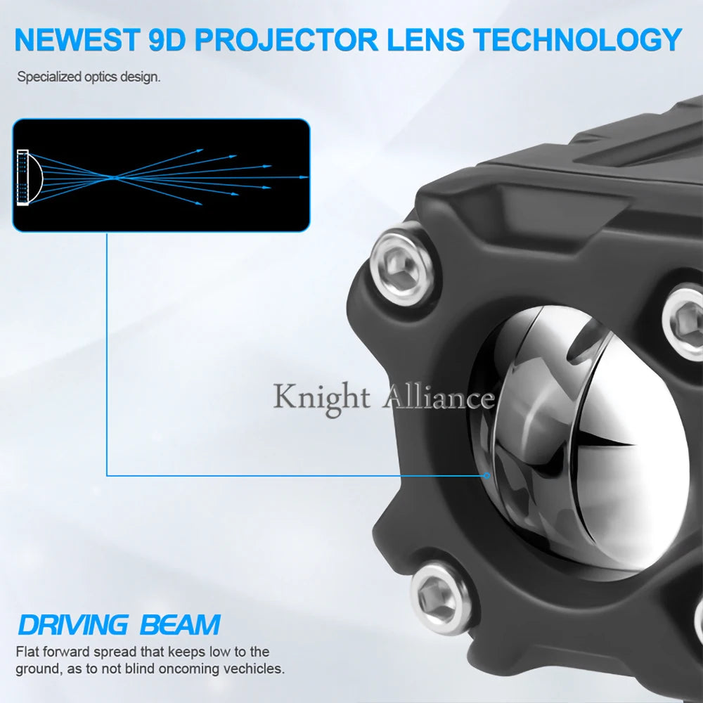 Motorcycle LED Spotlight Headlight Dual colour LED Lens Hi/Low beam Driving Spot Fog Lights External farol auxiliar moto 12V