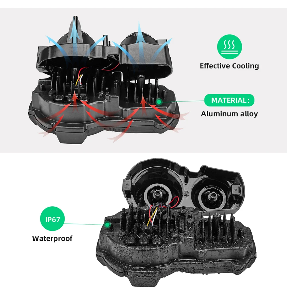 * High-Quality Reflectors and Lenses : LED's reflectors and lenses designed to minimize the amount of scattered light, meaning more of the produced light reaches the road, where it counts. Other brands use lower quality reflectors will reduce overall effectiveness.