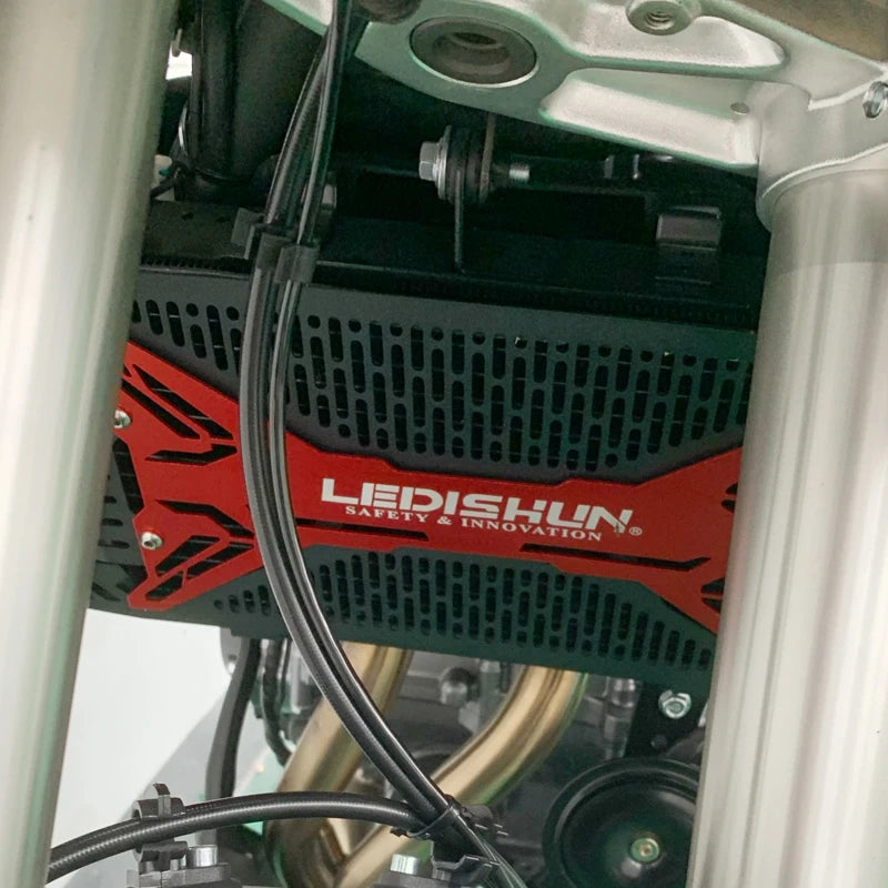 -[Function]:Radiator guard is attaching the cover to the front of the radiato,that working as a Protector to Prevent attack from the obstacle..and Radiator guards are gonna do just that they are gonna guard your radiator from any kind of debris being spun from your front wheel.