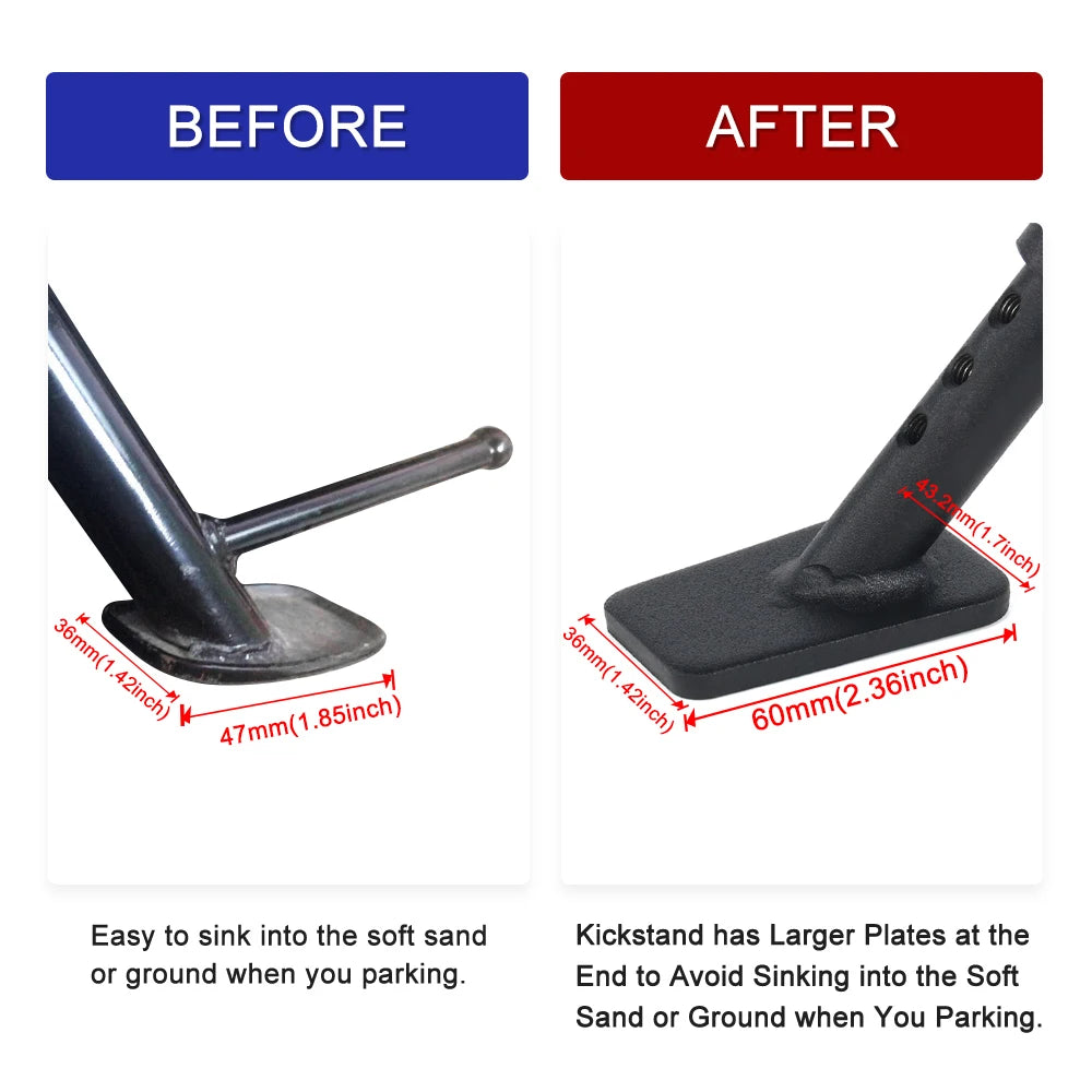 Kickstand has Larger Plates at the End to Avoid Sinking into the Soft Sand or Ground when You Parking.