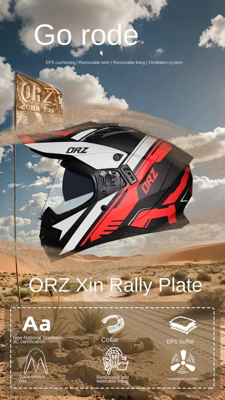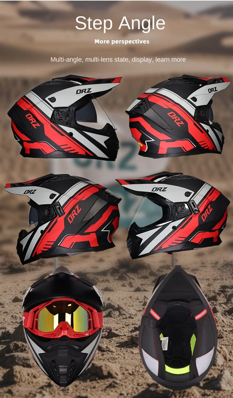 ORZ off-road ATV motorcycle helmet certified with brown lens, full face CASCO off-road motorcycle anti glare