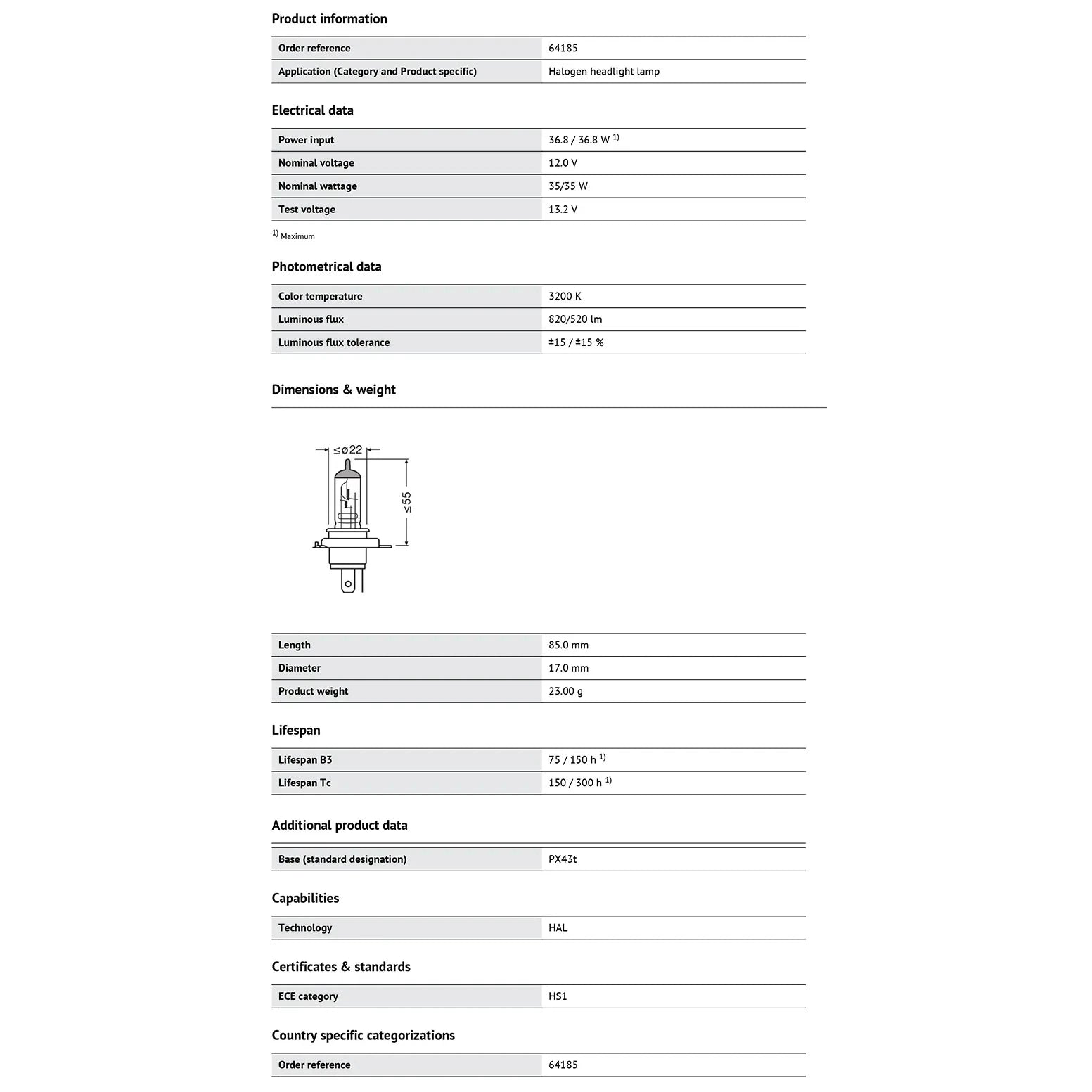 OSRAM HS1 64185 12V 35/35W PX43t CLASSIC Motor Halogen Headlight Original Bulb 3200K Light Standard Motorcycle Lamp ECE