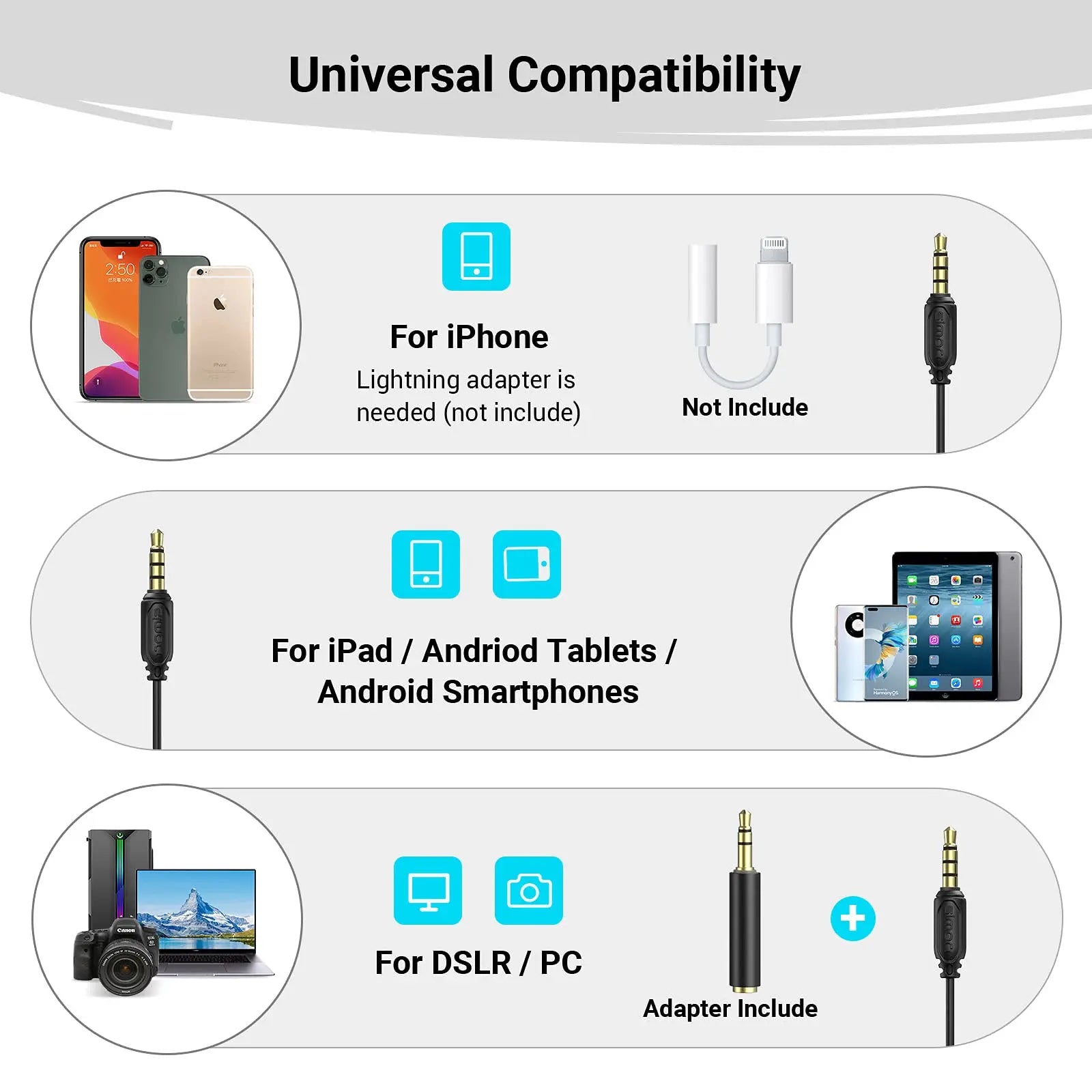 2. 3.5mm TRRS input connection, battery-free, plug-and-play.