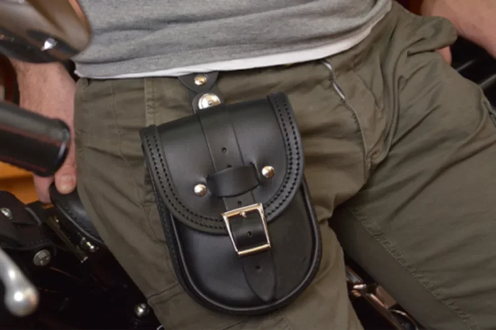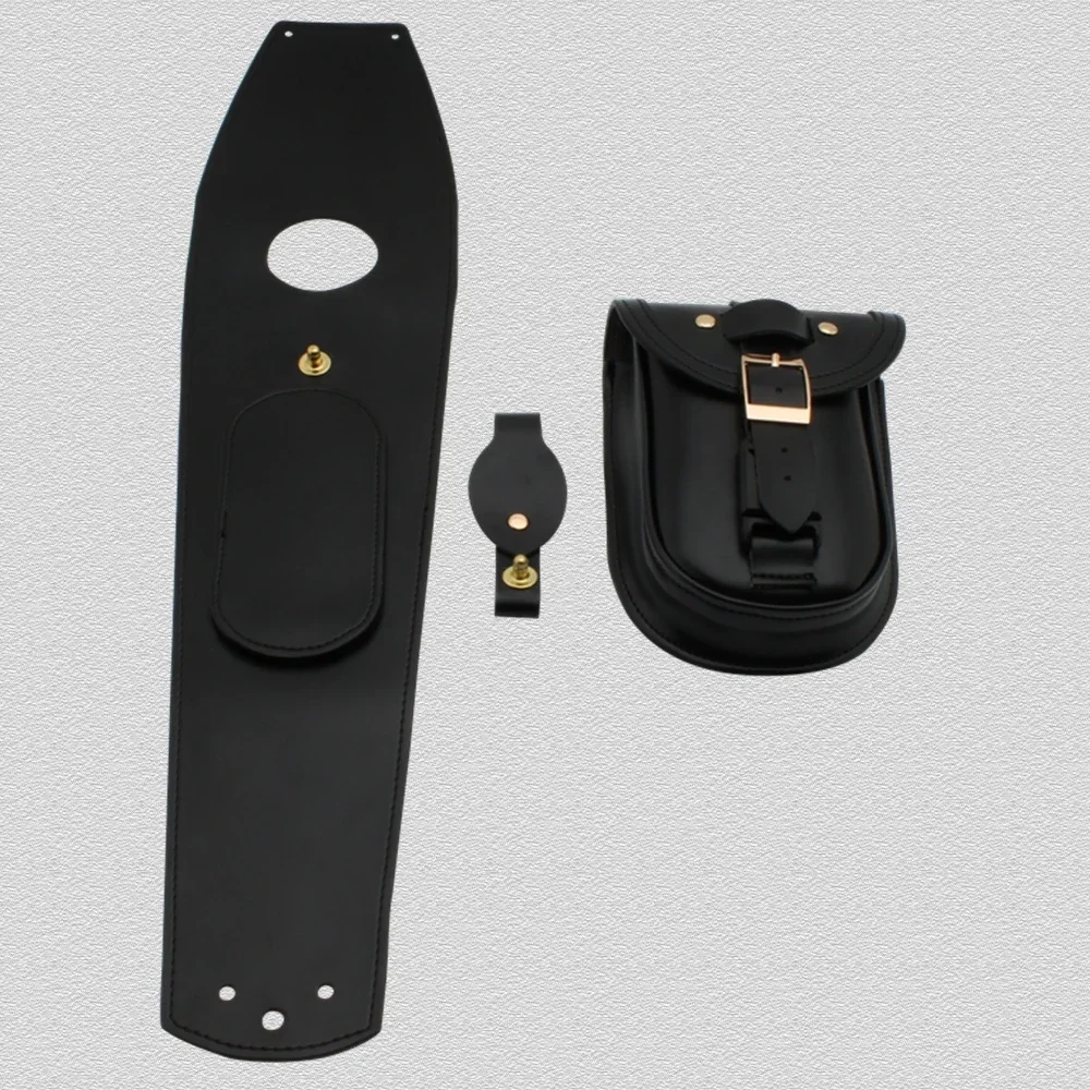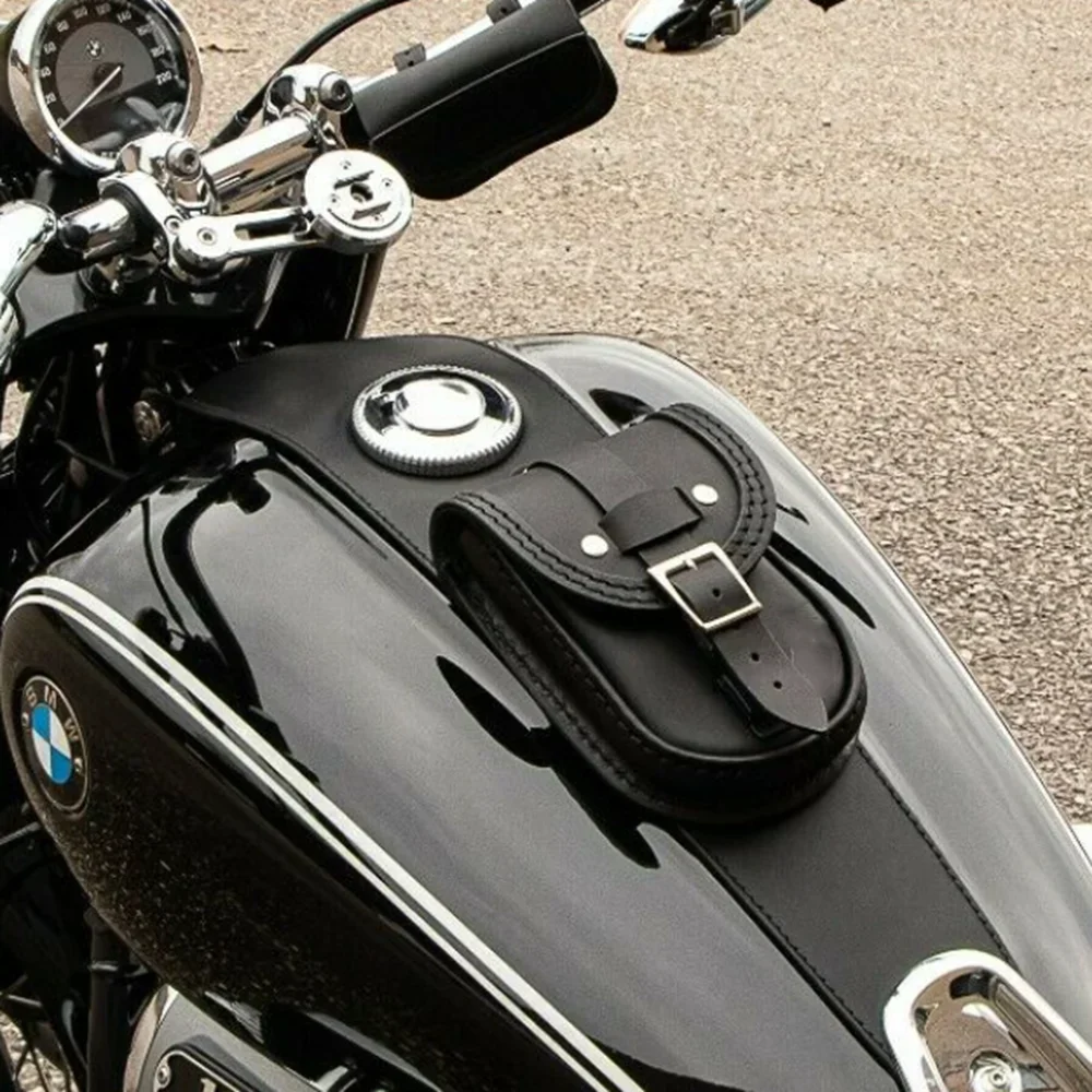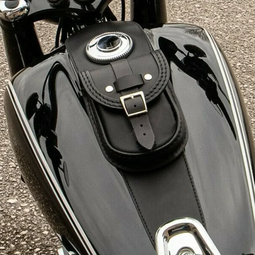 Motorcycle fuel tank storage bag with decoration and purpose. The shape is biased towards retro style. The leather material is handmade. After installation, it will make your motorcycle look more high-end.