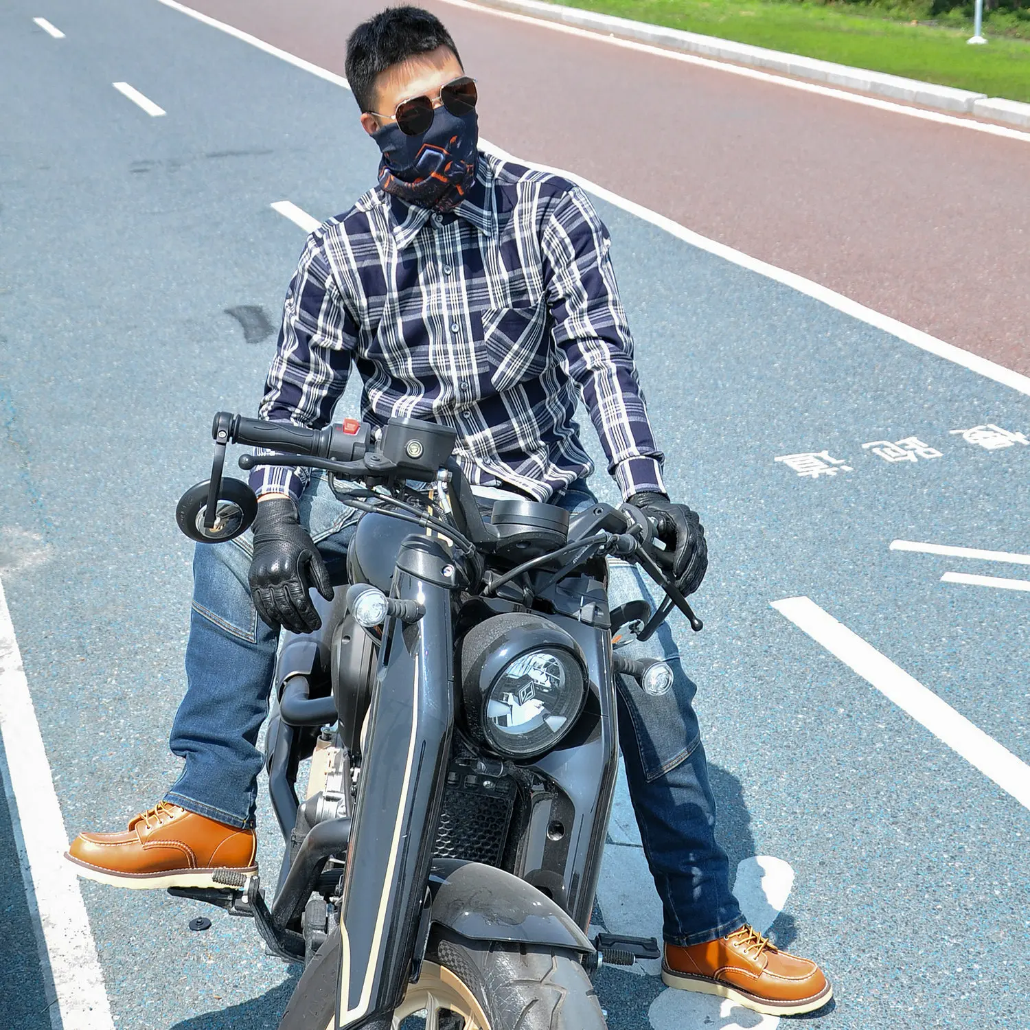 VOLERO Motorcycle Jacket Men Casual Retro Four Season Motorcycle Checkered Shirt Riding Suit Anti Fall Submachine Jacket