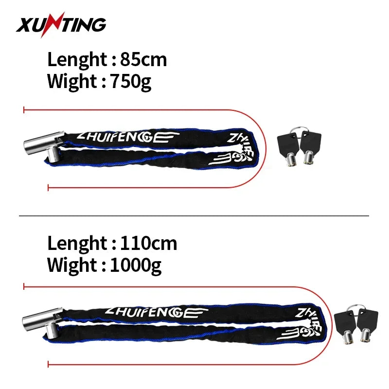 Xunting Bicycle Lock Heavy Duty Bike Chain Lock Anti-Theft Security 6MM Thick Chain for Motorcycle Door Scooter with 2 Keys